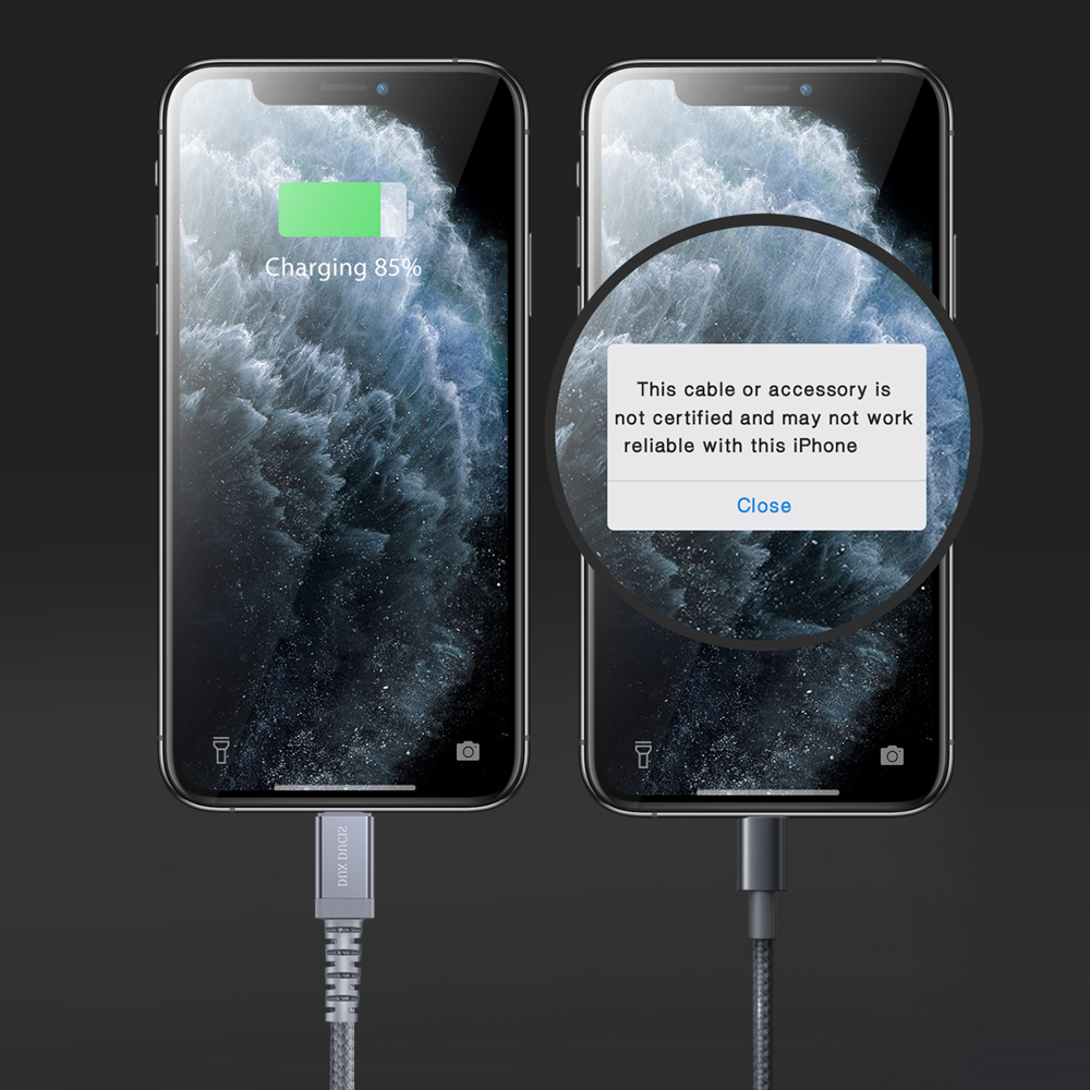 Καλώδιο για συσκευές Apple με επίσημη πιστοποίηση Apple MFI. Γρήγορα, σταθερή και ασφαλείς φόρτιση και μεταφορά δεδομένων (Apple C94). Υποστήριξη γρήγορης φόρτισης PD 18W, επιτρέπει γρήγορη φόρτιση για συσκευές Apple από το iPhone 8 και μετά . Επιφάνεια με πυκνή πλέξη νάιλον, το κάνει ανθεκτικό στην καθημερινή/ σκληρή χρήση.