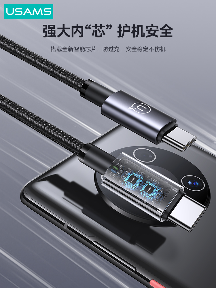 Καλώδιο φόρτισης fast charging και data USAMS Sufeng Series Aluminum Alloy Type-C σε Type-C PD 60W 1.2m (SJ661USB01) γκρι