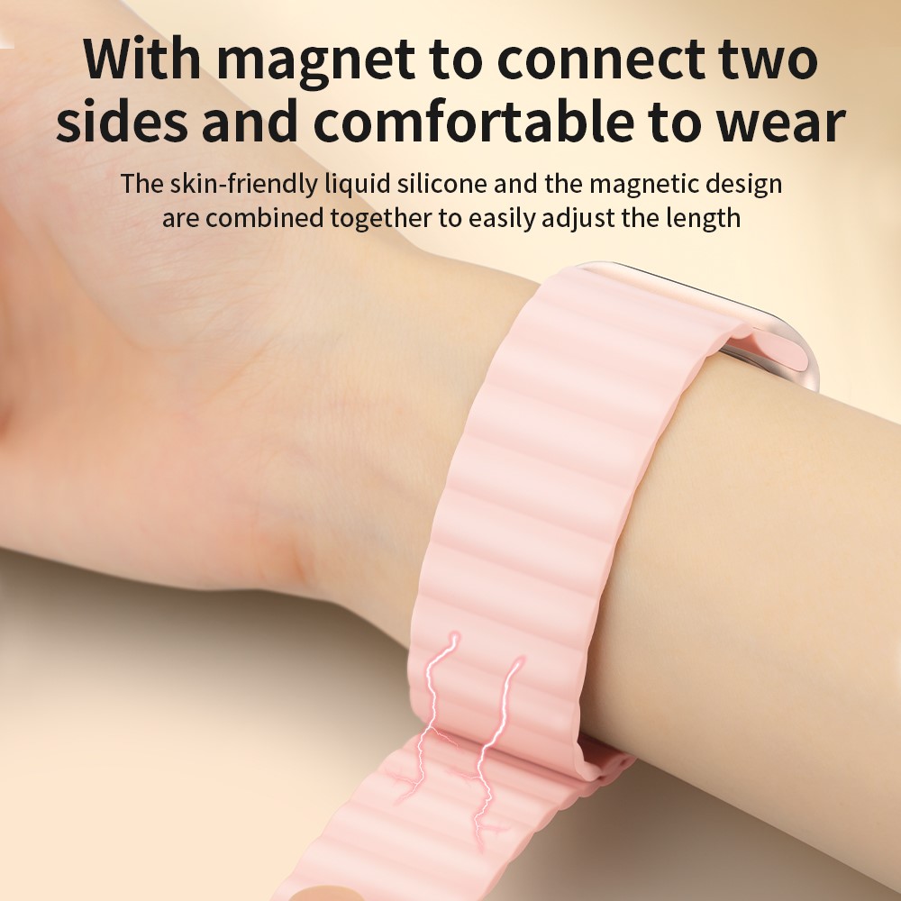 Το λουράκι για το Apple Watch της εταιρείας Kingxbar και είναι σχεδιασμένο να ταιριάζει απόλυτα στα μοντέλα Apple Watch 38/40/41mm. Κατασκευασμένο από υψηλής ποιότητας σιλικόνη, το λουράκι αυτό διακρίνεται για την ανθεκτικότητά του στο νερό και τον ιδρώτα, καθιστώντας το ιδανικό για καθημερινή χρήση. Είναι εξαιρετικά ελαφρύ και εύκαμπτο, προσφέροντας άνετη εφαρμογή στον καρπό, ενώ η απαλή του υφή δεν προκαλεί ερεθισμούς, επιτρέποντας την άνετη χρήση καθ’ όλη τη διάρκεια της ημέρας. Είναι ιδανικό για casual εμφανίσεις, αλλά και για όσους ασκούνται, χάρη στην ανθεκτικότητά του. Ένα από τα πιο ξεχωριστά χαρακτηριστικά του είναι τα μαγνητάκια που είναι τοποθετημένα κάθετα σε όλες τις επιφάνεις και εξασφαλίζουν την γρήγορη και ασφαλή τοποθέτηση στο χέρι σας, αλλά και το εύκολο ξεκούμπωμα.