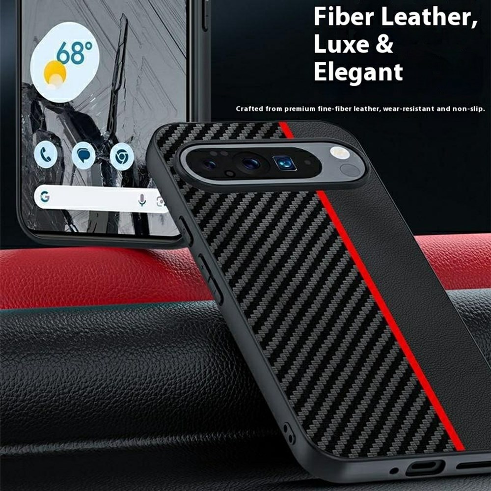 Σκληρή Πλάτη από Συνθετικό Δέρμα (PU) + PC για Google Pixel 10 Pro XL 5G σε Μαύρο/Κόκκινο με υφή Carbon Fiber για άριστη προστασία.