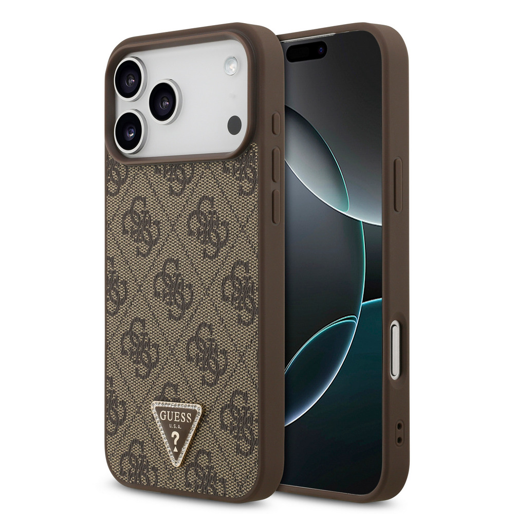 Θήκη Guess Magsafe με glitter metal triangle logo TPU και επικάλυψη δερματίνης για iPhone 17 Pro Max καφέ