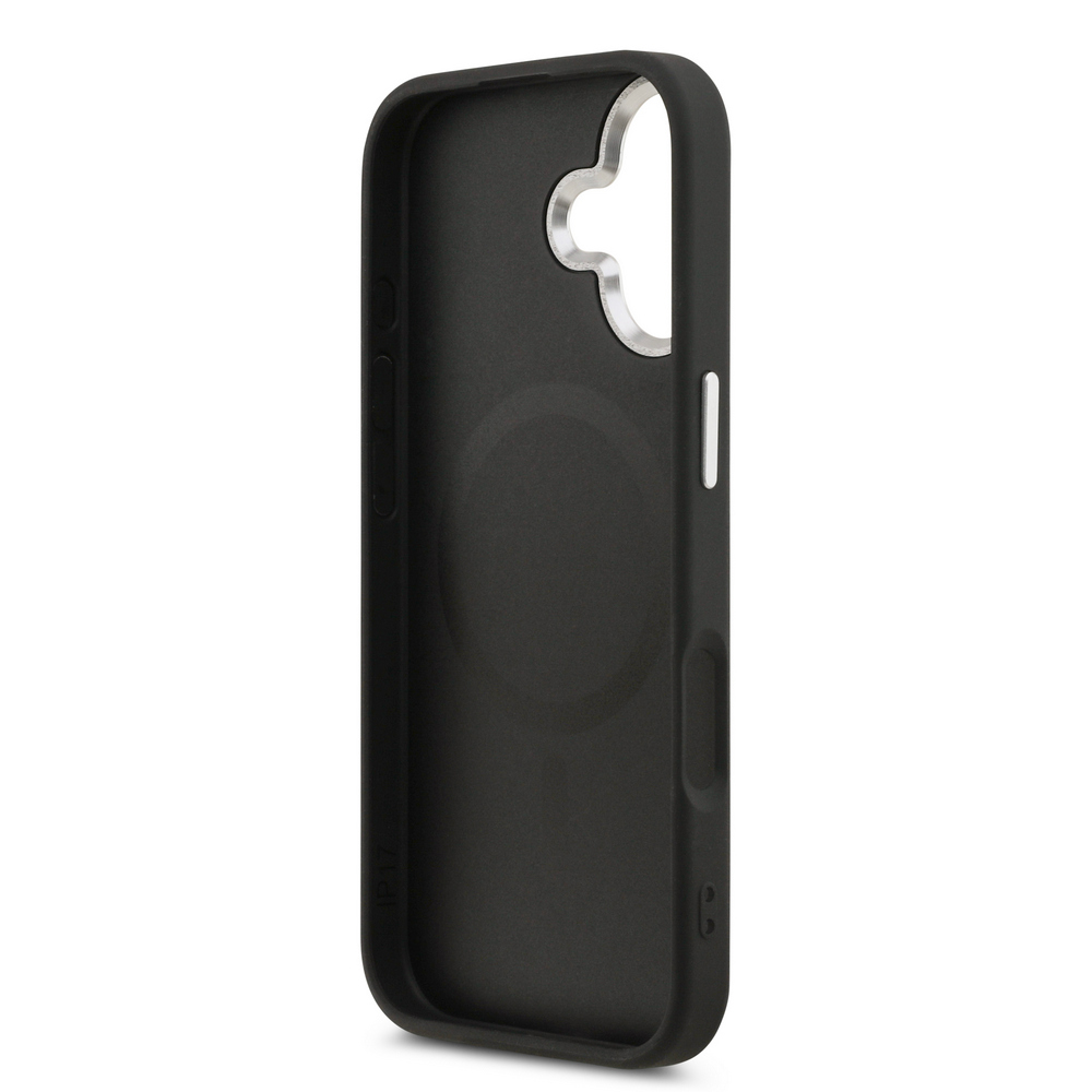 Η θήκη Guess Magsafe για iPhone 17 ξεχωρίζει με την ανάγλυφη μαύρη επιφάνειά της που προσφέρει μοναδική υφή και άψογο στυλ. Το χαρακτηριστικό metal triangle logo στο κέντρο της πίσω όψης προσθέτει premium πινελιά, ενώ το textured φινίρισμα δερματίνης εξασφαλίζει άνετο κράτημα και αποτρέπει τα δακτυλικά αποτυπώματα.