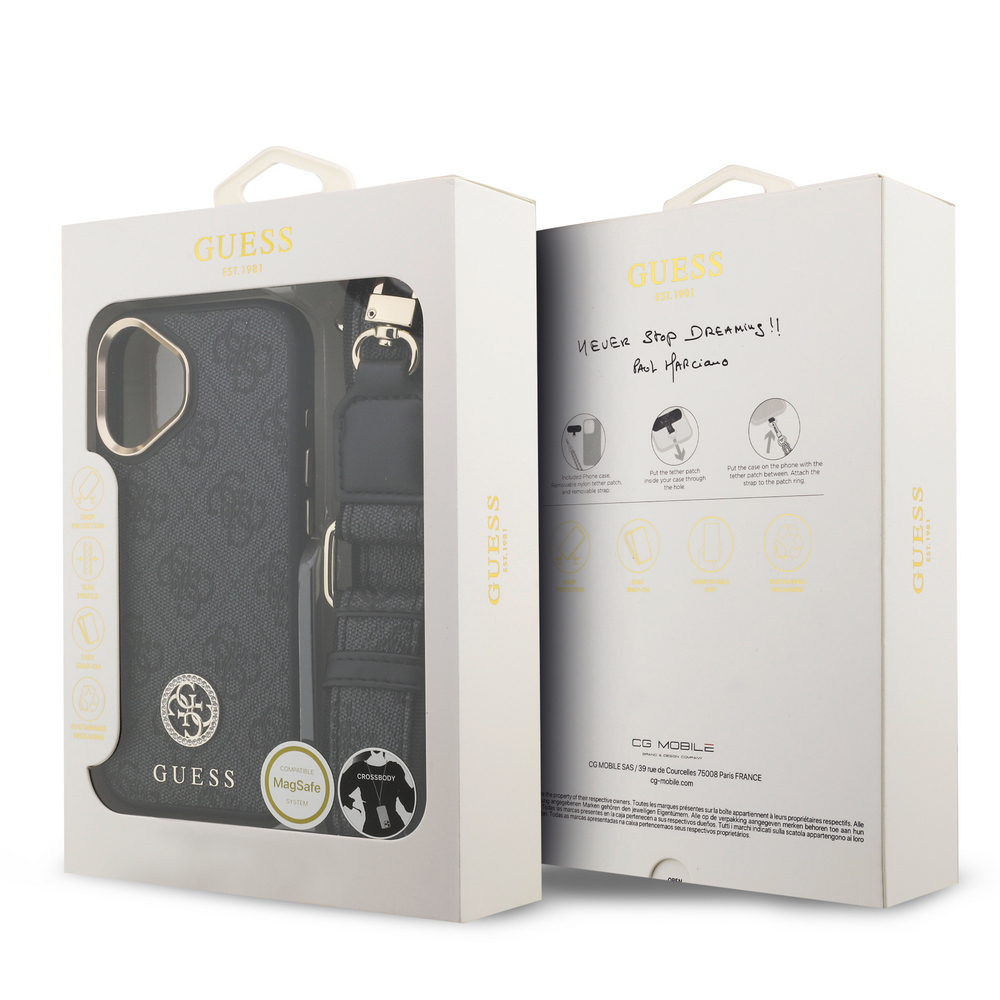 Εντυπωσιακή θήκη Guess με χαρακτηριστικό 4G μοτίβο και χρυσές λεπτομέρειες – Περιλαμβάνει premium δερμάτινο strap λαιμού για hands-free μεταφορά με στυλ