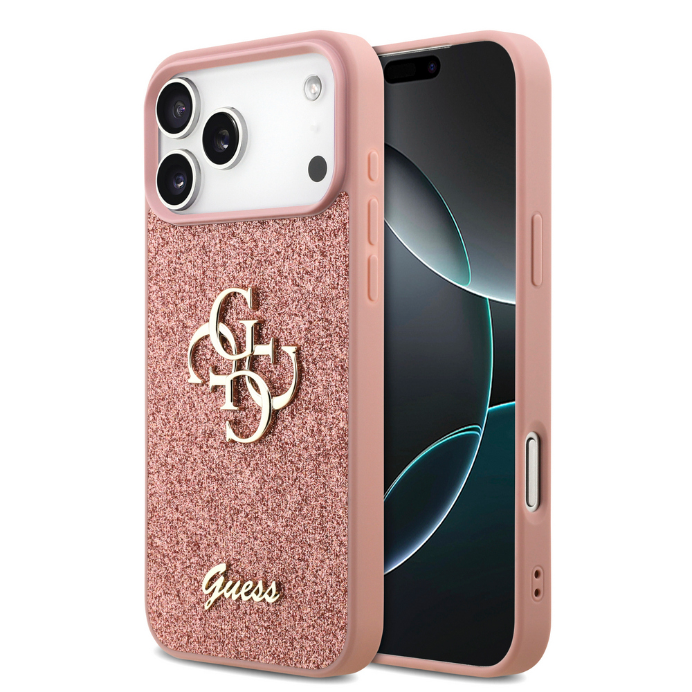 Θήκη Guess με χρυσό 4G metal logo TPU και επικάλυψη glitter και υπογραφή Guess για iPhone 17 Pro Max ροζ
