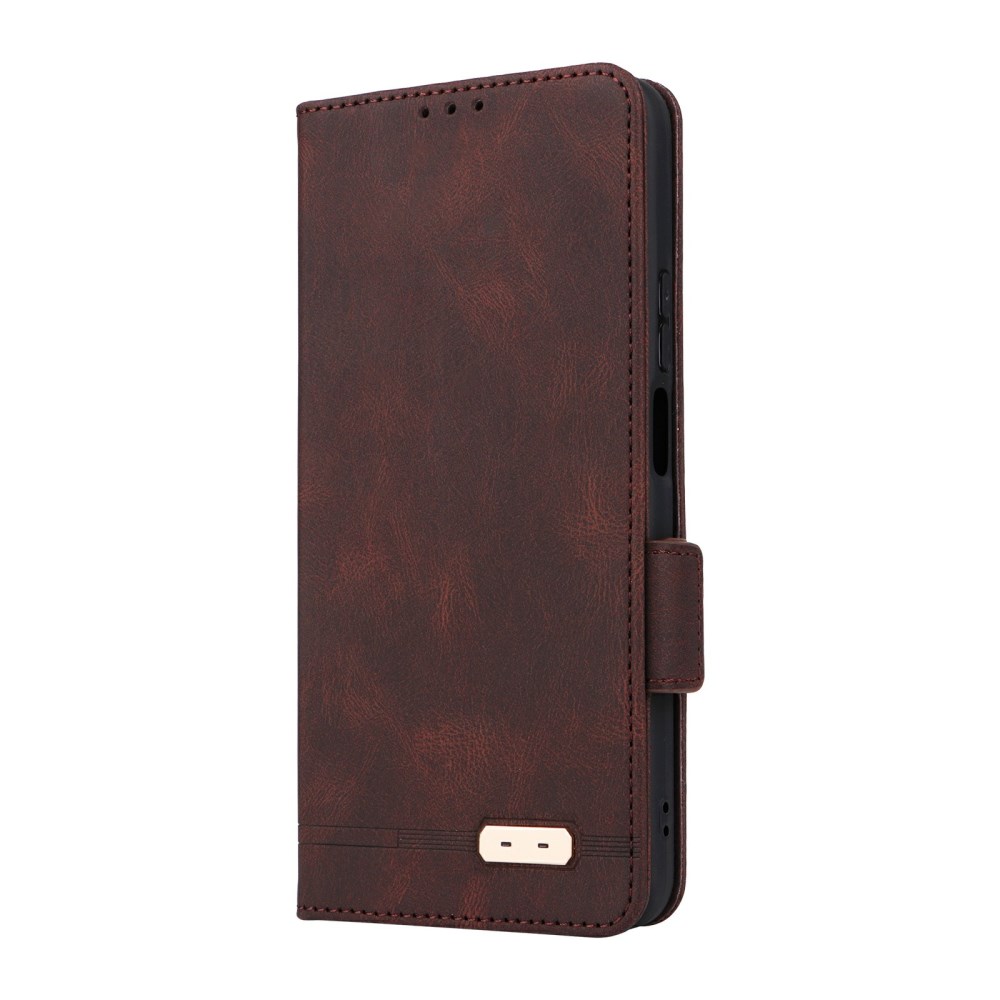 Το Flip Πορτοφόλι από Συνθετικό Δέρμα (PU) με TPU για το Honor 400 Smart σε κομψή καφέ απόχρωση συνδυάζει εκλεκτό συνθετικό δέρμα PU με εσωτερικό σκελετό TPU, εξασφαλίζοντας άρτια προστασία από πτώσεις και καθημερινή φθορά. Η μεταλλική διακοσμητική λεπτομέρεια στη γωνία προσδίδει κομψό και μοντέρνο χαρακτήρα στη συσκευή σας.