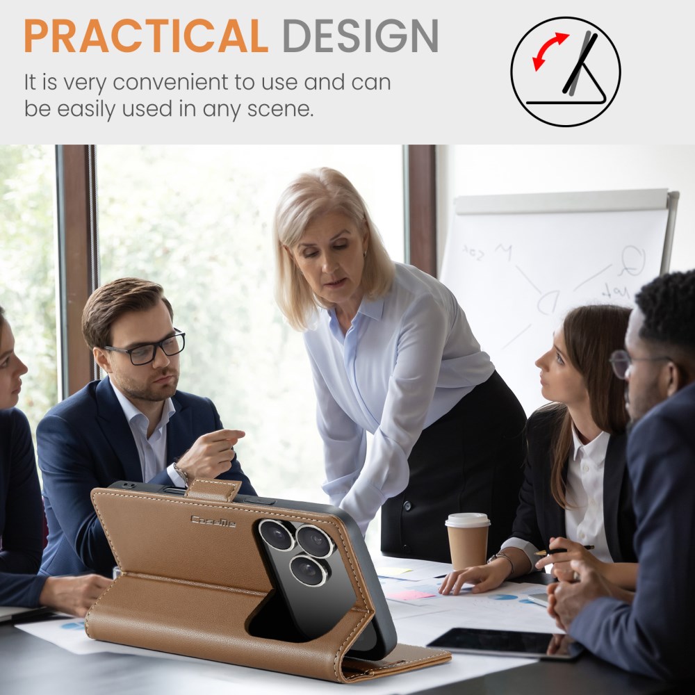 Θήκη iPhone 17 Pro – CASEME 023 – Flip Πορτοφόλι από Συνθετικό Δέρμα (PU) – Καφέ – RFID/Wallet/Stand