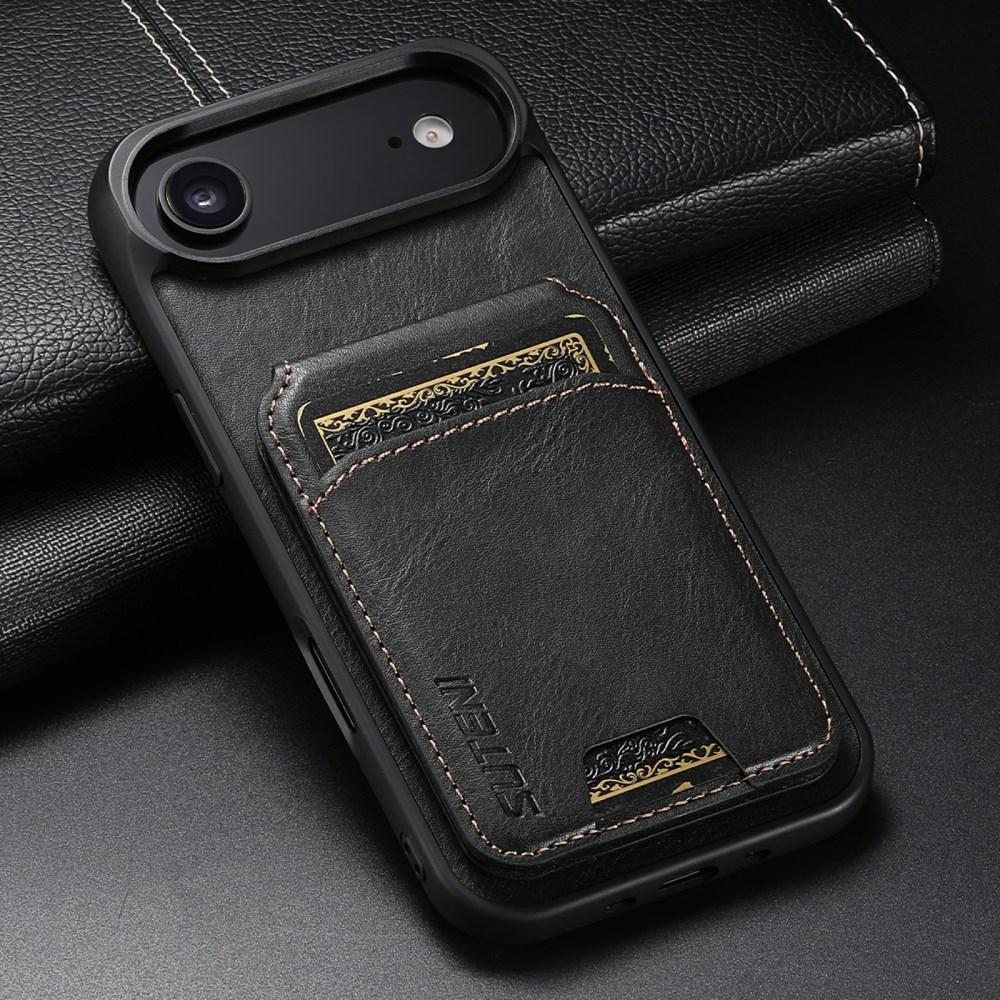 Θήκη iPhone Air – SUTENI H02 – Πλάτη από Συνθετικό Δέρμα (PU) με TPU – Μαύρο – Wallet/Stand