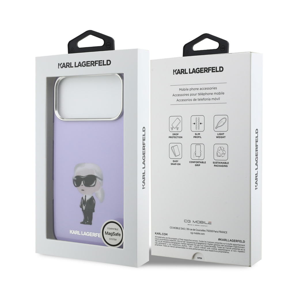 Θήκη Karl Lagerfeld Magsafe με IML Aquarelle Karl & Chouppette logo για iPhone 17 Pro Max μωβ