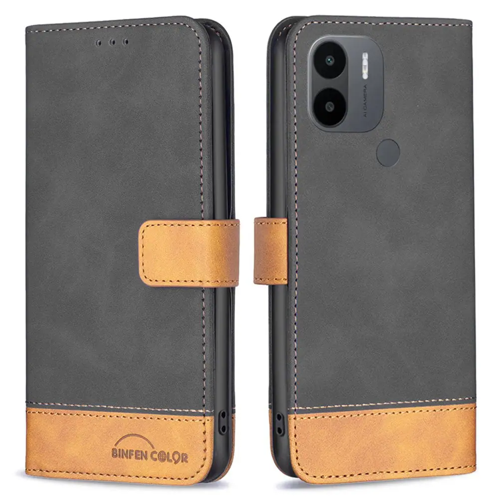 Θήκη Xiaomi Redmi A1+ BINFEN COLOR Leather Wallet Double Stitching Lines v2 με βάση στήριξης, υποδοχές καρτών και μαγνητικό κούμπωμα μαύρο