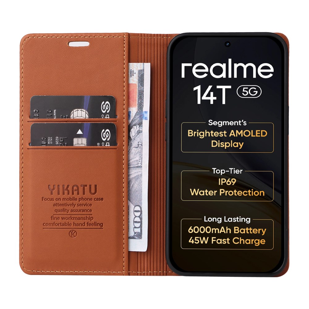Θήκη Motorola Edge (2025) 5G / 60 Fusion 5G – YIKATU – Flip Πορτοφόλι από Συνθετικό Δέρμα (PU) με TPU – Καφέ – Wallet/Stand