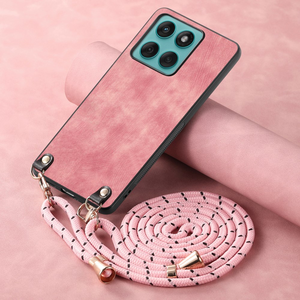 Πλάτη από Συνθετικό Δέρμα (PU) με TPU για Motorola Edge 60 Fusion 5G από OEM σε Ροζ χρώμα με ρυθμιζόμενο λουράκι 120cm.