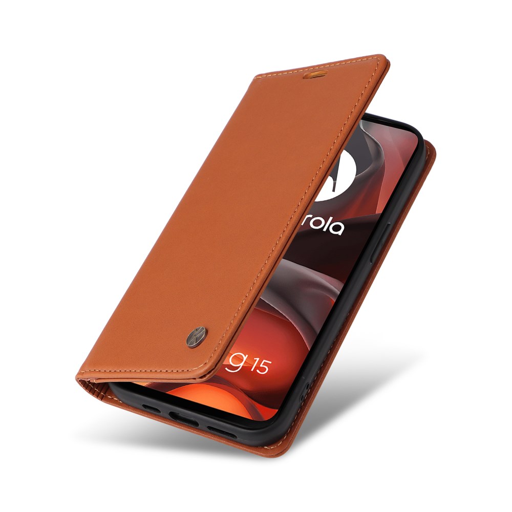 Θήκη Motorola Moto G15 4G – YIKATU – Flip Πορτοφόλι από Συνθετικό Δέρμα (PU) με TPU – Καφέ – Wallet/Stand