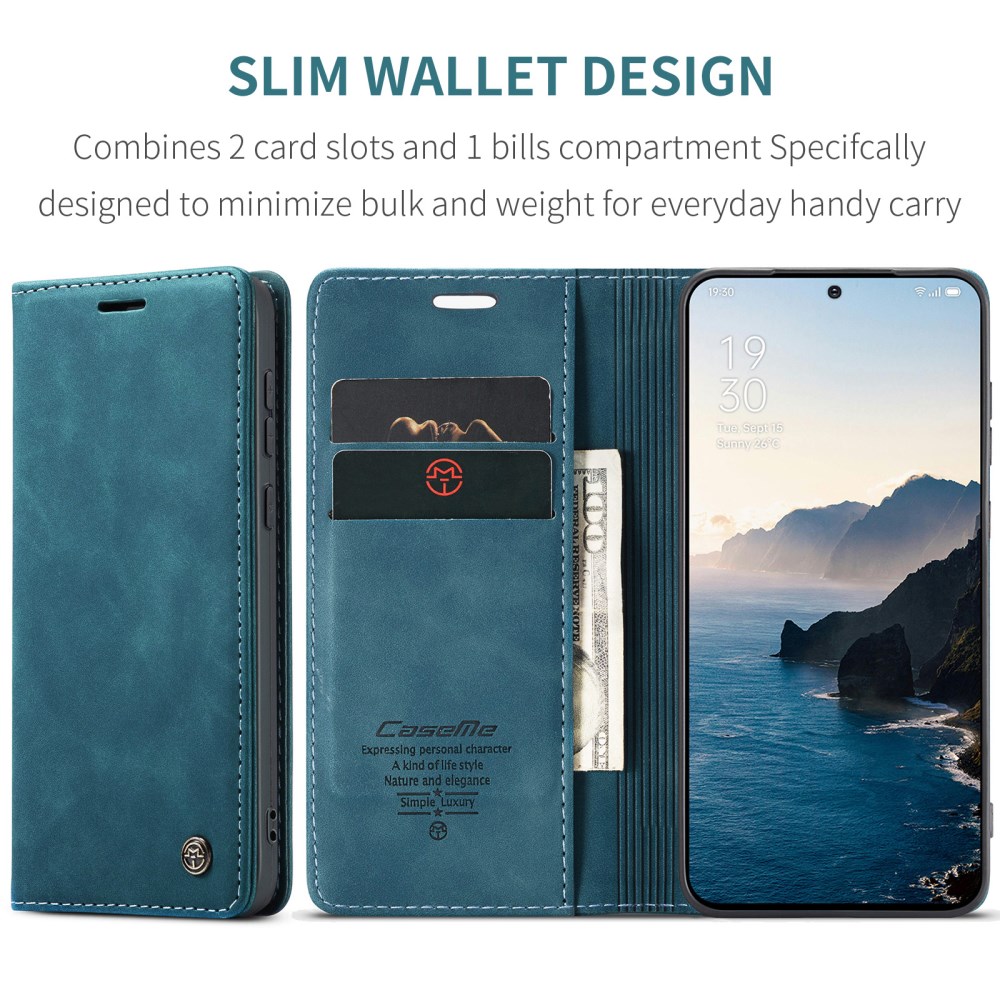Flip Πορτοφόλι από Συνθετικό Δέρμα (PU) για OnePlus 15 5G από CASEME 013 Series σε Μπλε χρώμα με θήκες καρτών και αναδιπλούμενη βάση στήριξης.