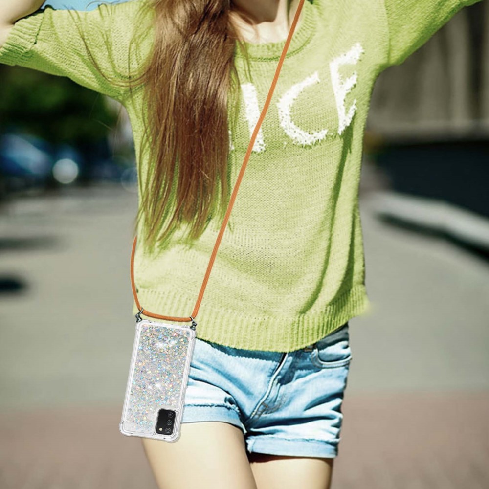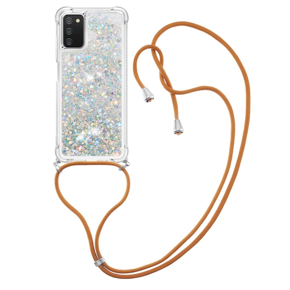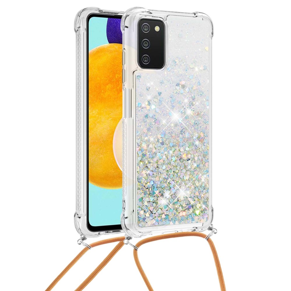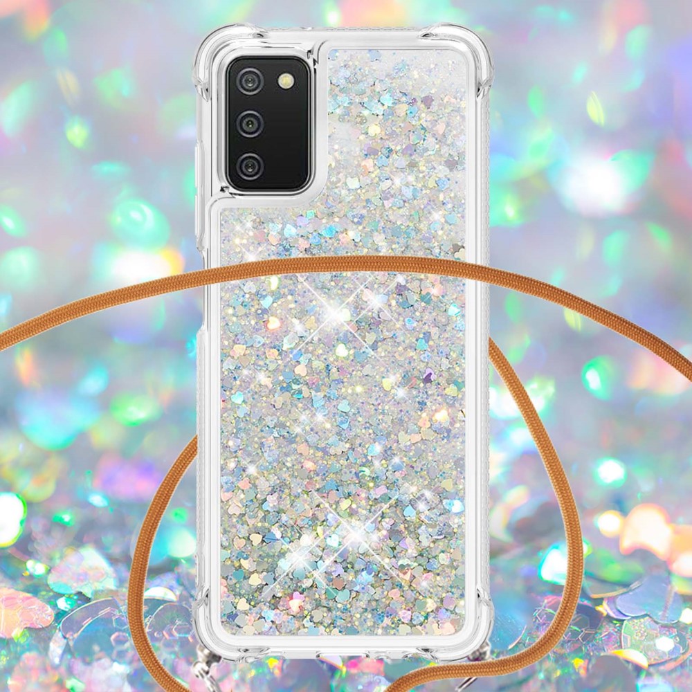 Θήκη Samsung Galaxy A03s OEM πλάτη με κορδόνι και διακριτική σκόνη γκλίτερ άμμου από αντικραδασμικό TPU ασημί