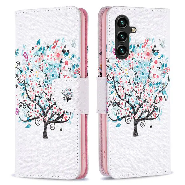 Θήκη Samsung Galaxy A35 5G OEM Flowered Tree με βάση στήριξης, υποδοχές καρτών και μαγνητικό κούμπωμα Flip Wallet από συνθετικό δέρμα και TPU