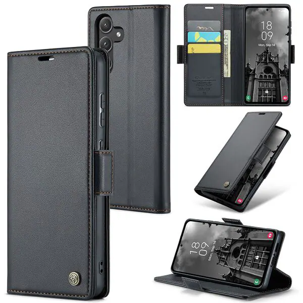 Θήκη Samsung Galaxy A55 5G CASEME 023 Series Πορτοφόλι με βάση στήριξης, υποδοχές καρτών και μαγνητικό κούμπωμα από συνθετικό δέρμα και TPU μαύρο