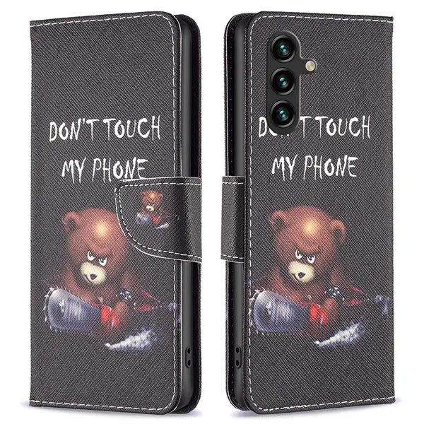 Αντικατοπτρίστε την προσωπικότητά σας με την ξεχωριστή θήκη Angry Bear για το Samsung Galaxy A56. Κατασκευασμένη από ανθεκτικό συνθετικό δέρμα και TPU, προσφέρει μια ιδιαίτερη εμφάνιση με το δυναμικό σχέδιο του θυμωμένου αρκούδου και την προειδοποιητική φράση “DON’T TOUCH MY PHONE“.