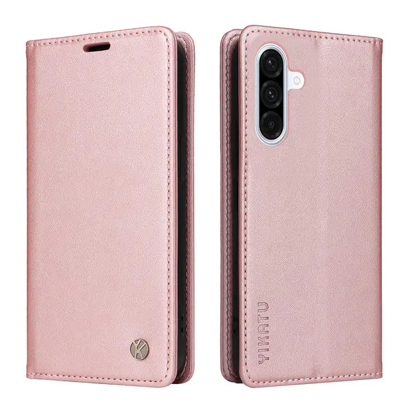 Θήκη Samsung Galaxy A56 YIKATU Folio Series v5 με βάση στήριξης, υποδοχή καρτών και μαγνητικό κούμπωμα Flip Wallet από συνθετικό δέρμα και TPU ροζ χρυσό