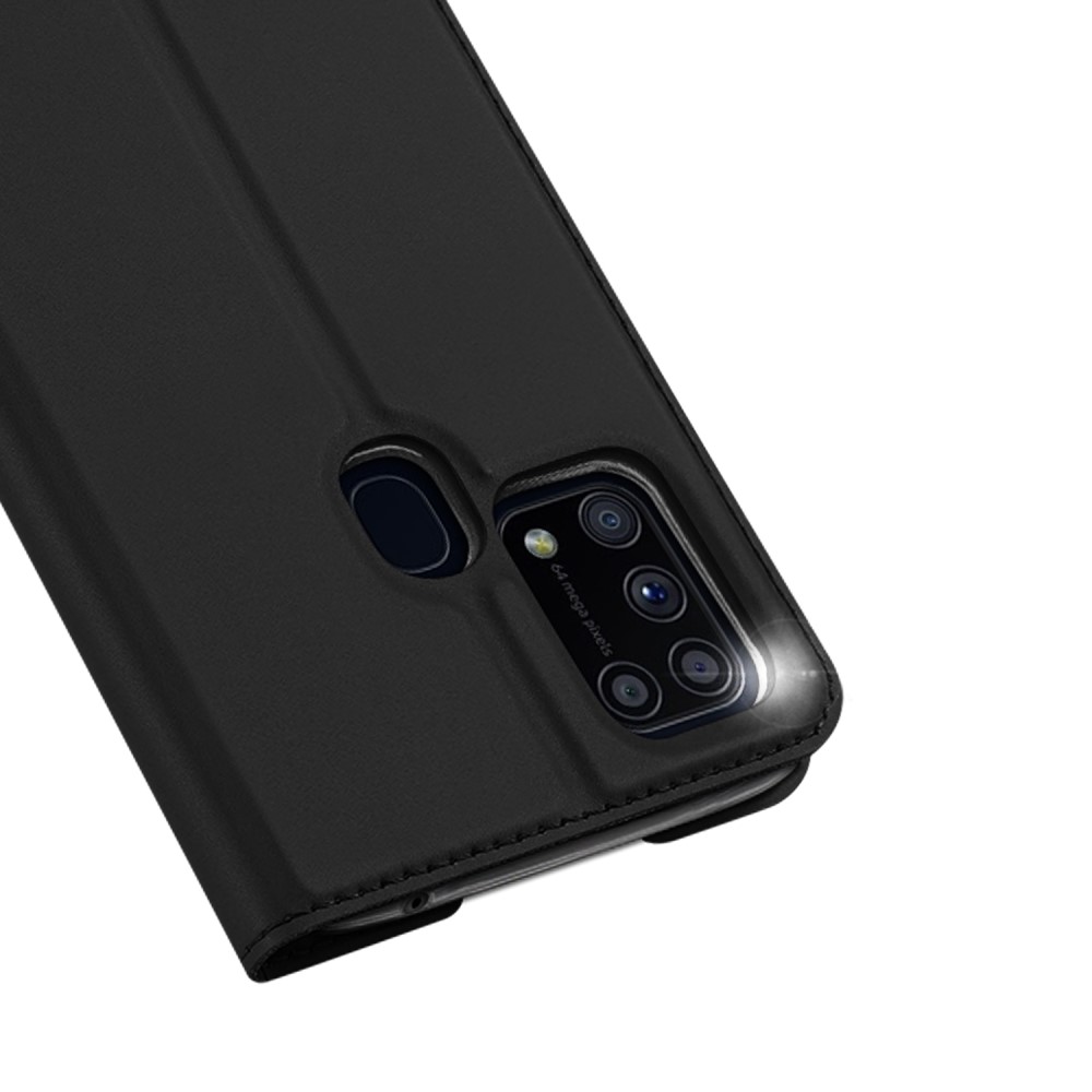 Η υψηλής αισθητικής Slim θήκη book ή αλλιώς Flip Wallet με μαγνητικό κούμπωμα για το Samsung Galaxy M31 σας είναι φτιαγμένη από πολύ καλής ποιότητας συνθετικό δέρμα και ενισχυμένες ραφές για μεγαλύτερη αντοχή στην καθημερινή χρήση.