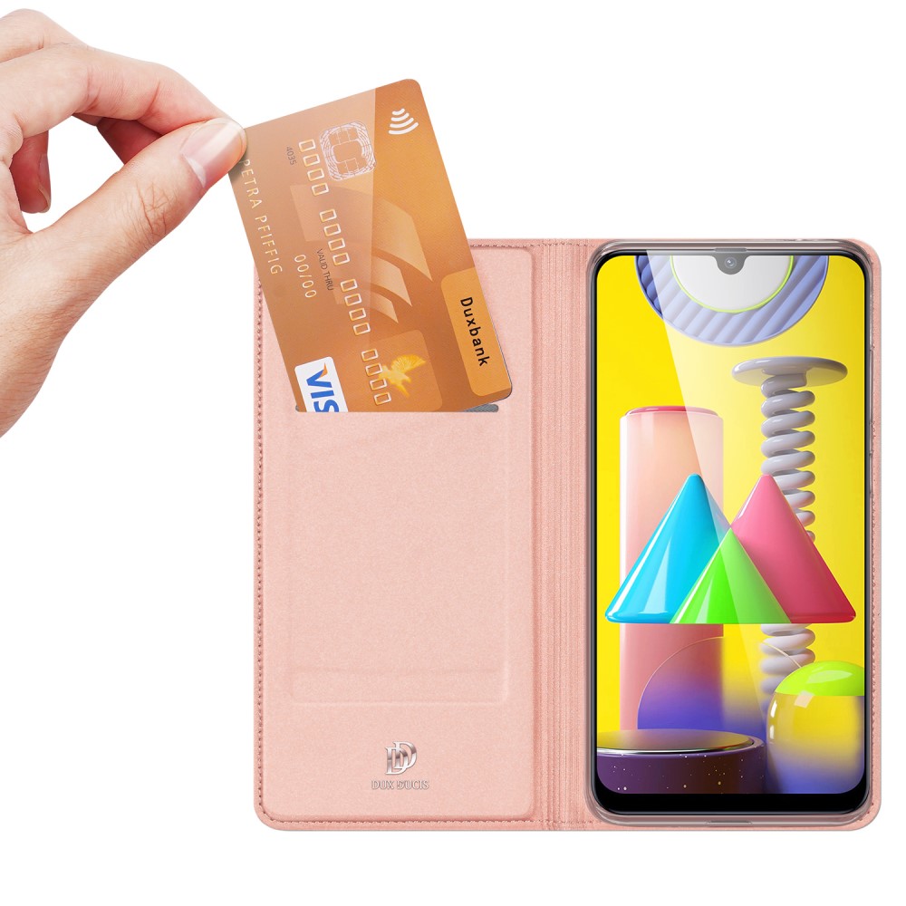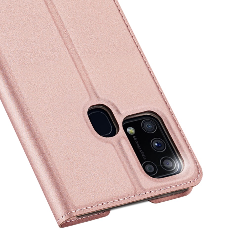 Θήκη Samsung Galaxy M31 DUX DUCIS Skin Pro Series με βάση στήριξης, υποδοχή καρτών και μαγνητικό κούμπωμα Flip Wallet από συνθετικό δέρμα και TPU ροζ χρυσό