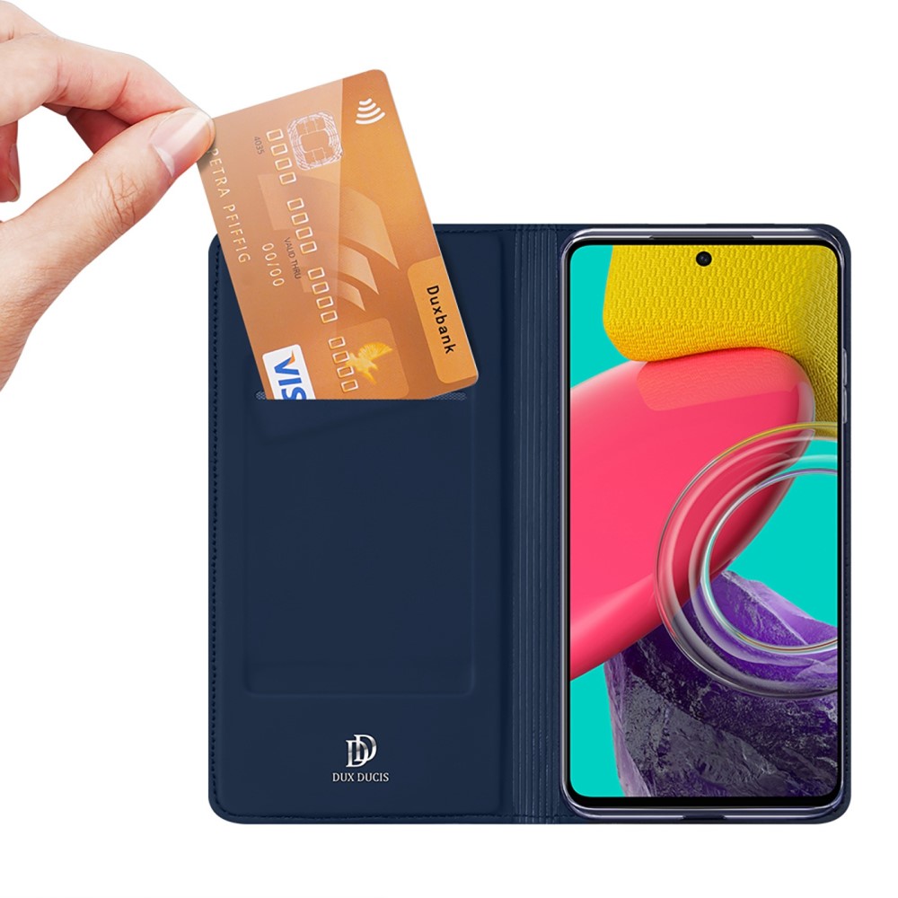 Θήκη Samsung Galaxy M53 5G DUX DUCIS Skin Pro Series με βάση στήριξης, υποδοχή καρτών και μαγνητικό κούμπωμα Flip Wallet από συνθετικό δέρμα και TPU μπλε