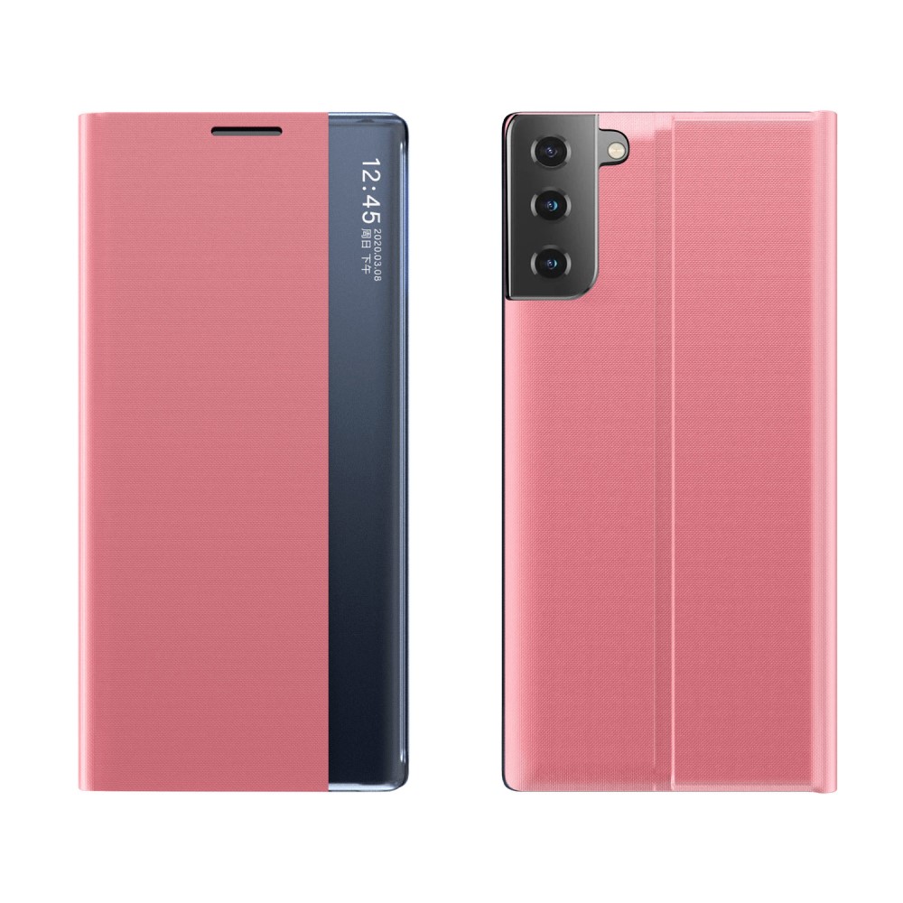 Θήκη Samsung Galaxy S21 OEM Half Mirror View Stand Cover με μαγνητικό κούμπωμα από συνθετικό δέρμα ροζ