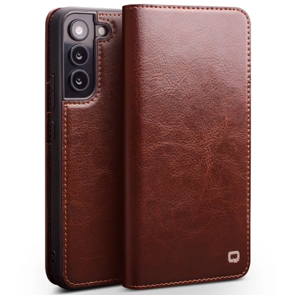 Θήκη Samsung Galaxy S22 5G QIALINO book v2 από Premium αυθεντικό δέρμα Genuine Cowhide καφέ