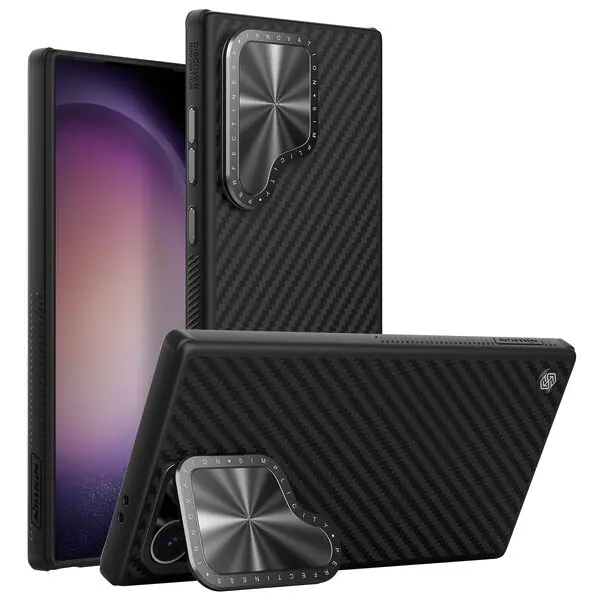Θήκη Samsung Galaxy S24 Ultra 5G NiLLkin CarboProp Aramid fiber Series με προστασία για την κάμερα και βάση στήριξης MagSafe από Αυθεντικό Ανθρακόνημα Premium TPU μαύρο