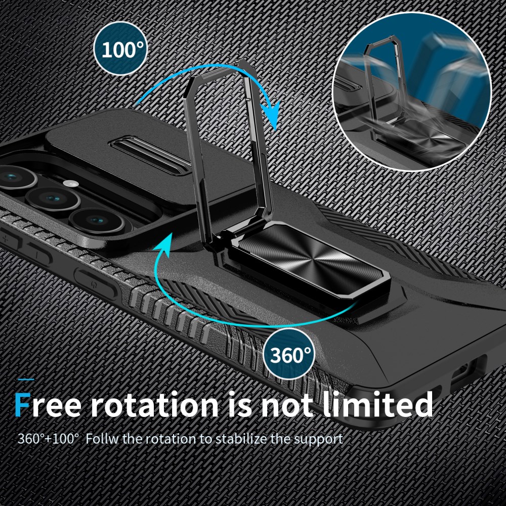 Η Σκληρή Πλάτη PC+TPU για το Samsung Galaxy S26 Plus 5G από τη σειρά OEM Camshield συνδυάζει διπλή προστασία υψηλής ποιότητας με έξυπνες λειτουργίες καθημερινής χρήσης. Σε κομψό μαύρο χρώμα, η θήκη διαθέτει ολισθαίνον κάλυμμα κάμερας, ενσωματωμένο Stand και αντιολισθητική επιφάνεια για ασφαλές κράτημα.