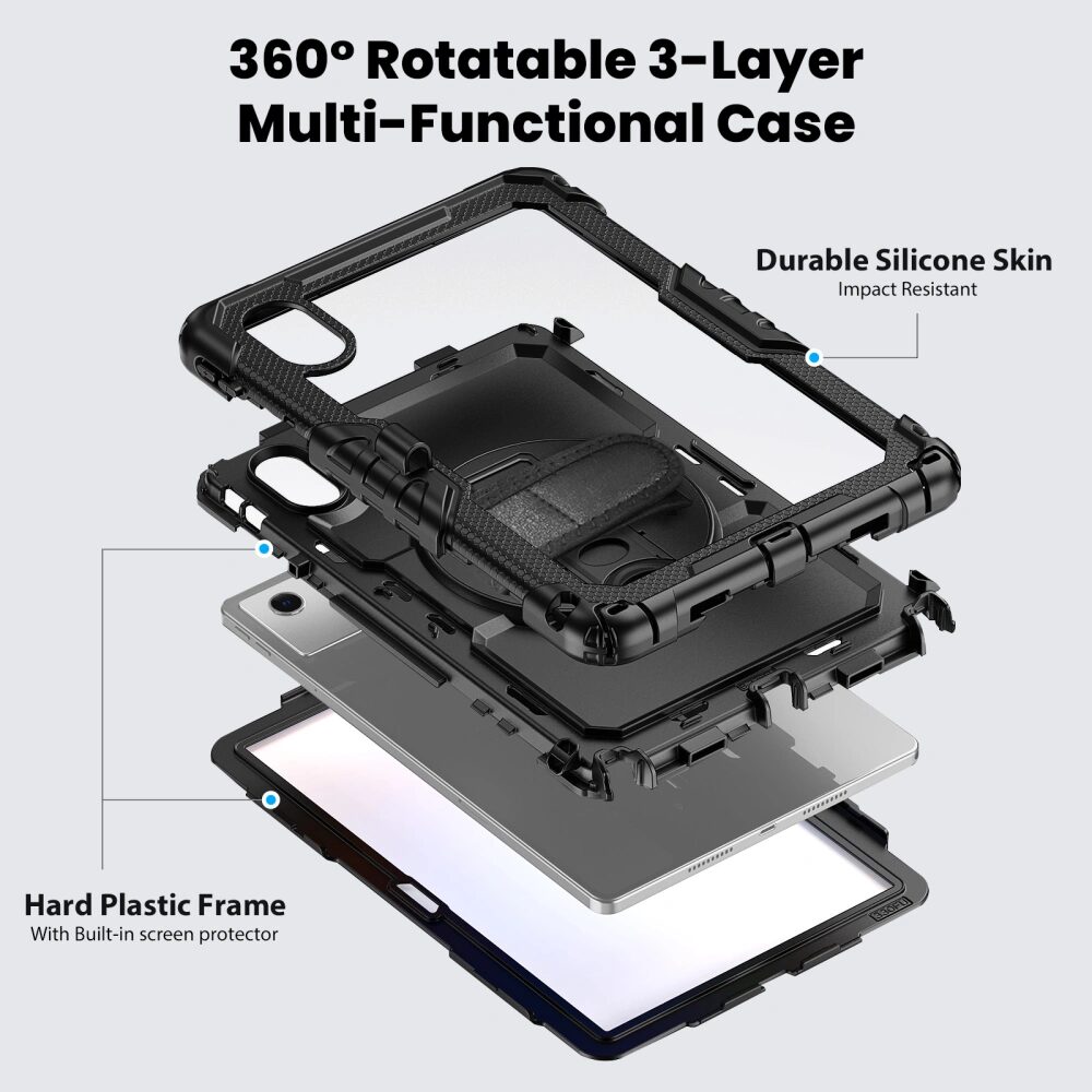 - Ολική προστασία 360°: Η κατασκευή από ανθεκτικό TPU καλύπτει πλήρως το tablet με ενισχυμένες γωνίες που απορροφούν τις κρούσεις από πτώσεις