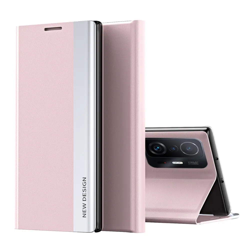 Θήκη Xiaomi 11T / 11T Pro New Design Leather Stand Cover από συνθετικό δέρμα ροζ