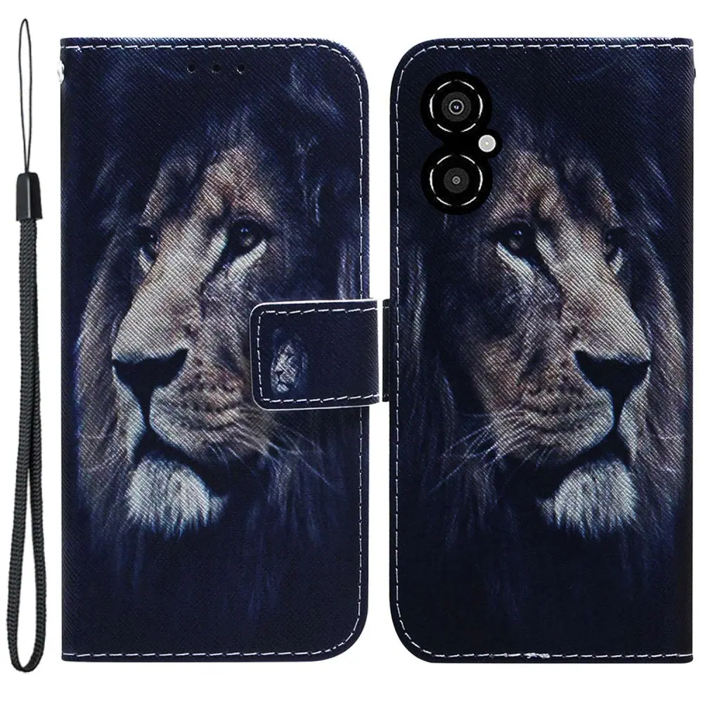 Θήκη Xiaomi Poco M4 5G OEM σχέδιο Lion με βάση στήριξης, υποδοχές καρτών και μαγνητικό κούμπωμα Flip Wallet δερματίνη