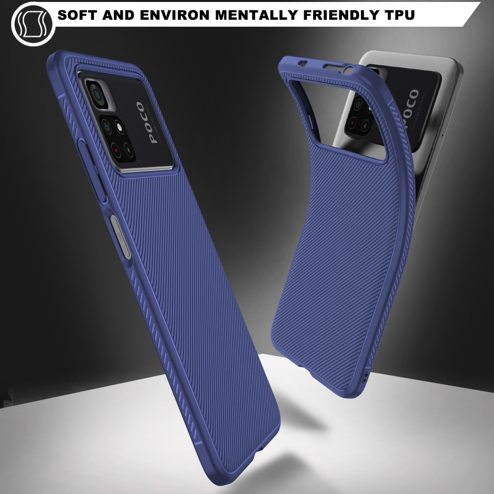 Θήκη Xiaomi Poco M4 Pro 4G OEM Twill Texture Carbon Πλάτη TPU μπλε
