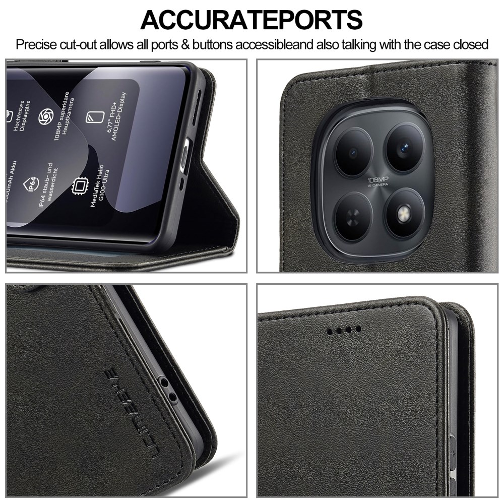 Το Flip Πορτοφόλι από Συνθετικό Δέρμα (PU) με TPU της LC.IMEEKE για το Xiaomi Poco M8 5G / Redmi Note 15 5G / Redmi Note 15 4G συνδυάζει κομψή υφή calf texture με πλήρη προστασία 360°. Η μαύρη απόχρωση προσδίδει διακριτική κομψότητα, ενώ το εσωτερικό TPU εξασφαλίζει αντοχή σε κρούσεις και γρατζουνιές.