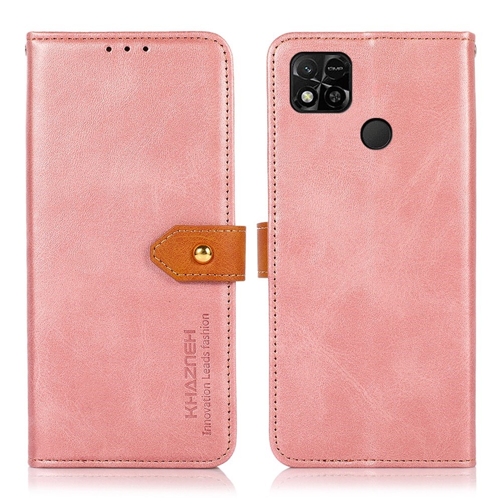 Θήκη Xiaomi Redmi 10A KHAZNEH Leather Wallet Golden Clasp με βάση στήριξης, υποδοχές καρτών και μαγνητικό κούμπωμα ροζ χρυσό