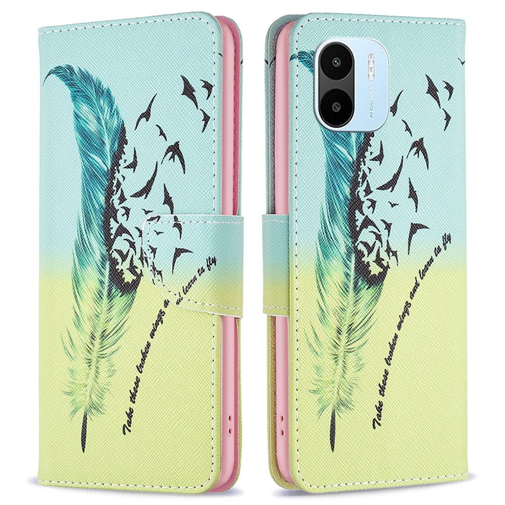 Θήκη Xiaomi Redmi A1 / A2 OEM Feather & Birds με βάση στήριξης, υποδοχές καρτών και μαγνητικό κούμπωμα Flip Wallet από συνθετικό δέρμα και TPU