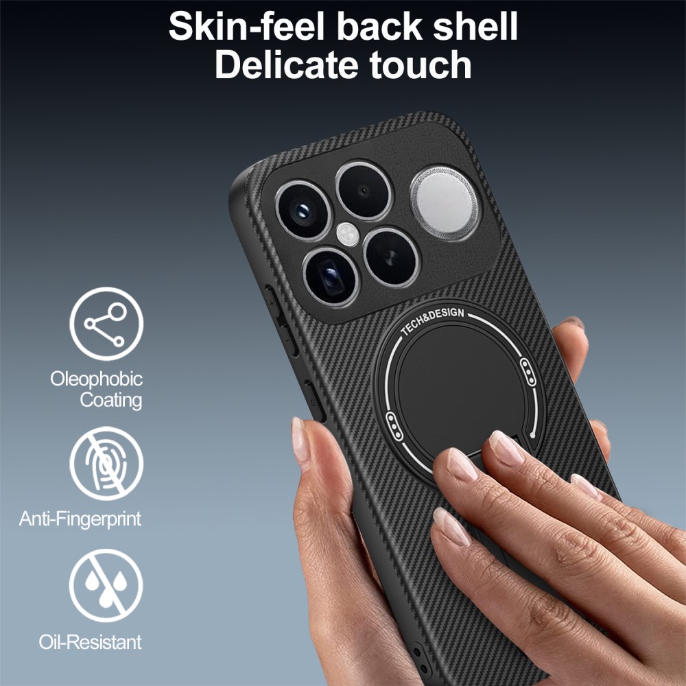Σκληρή Πλάτη PC+TPU για Xiaomi Redmi K90 Pro Max 5G / Poco F8 Ultra από OEM σε Γκρι χρώμα με ενσωματωμένο Stand και υφή Carbon Fiber.