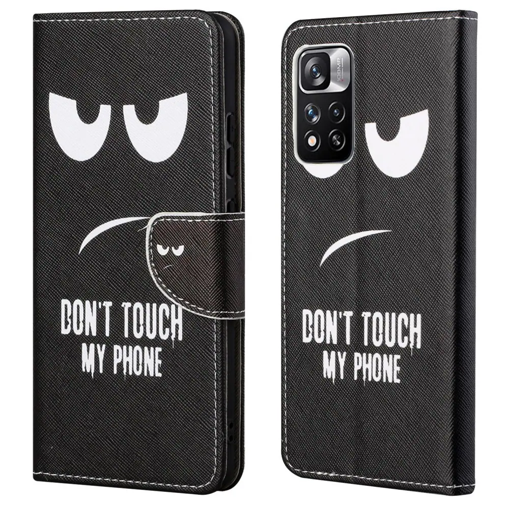 Θήκη Xiaomi Redmi Note 11 Pro / 11 Pro 5G OEM Σχέδιο Don’t Touch My Phone με βάση στήριξης, υποδοχές καρτών και μαγνητικό κούμπωμα Flip Wallet δερματίνη