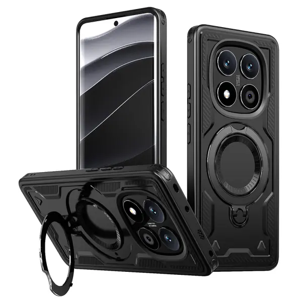 Θήκη Xiaomi Redmi Note 14 Pro 5G / Poco X7 5G Mad Mask Πλάτη Military Protection με Μαγνητικό δαχτυλίδι ,συμβατό με ασύρματη φόρτιση Magsafe και Βάση στήριξης TPU μαύρο