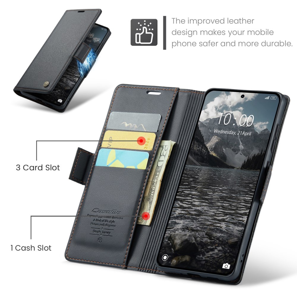 Flip Πορτοφόλι από Συνθετικό Δέρμα (PU) με TPU για Xiaomi Redmi Note 15 Pro 4G από CASEME 023 Series σε Μαύρο με RFID προστασία και Stand.