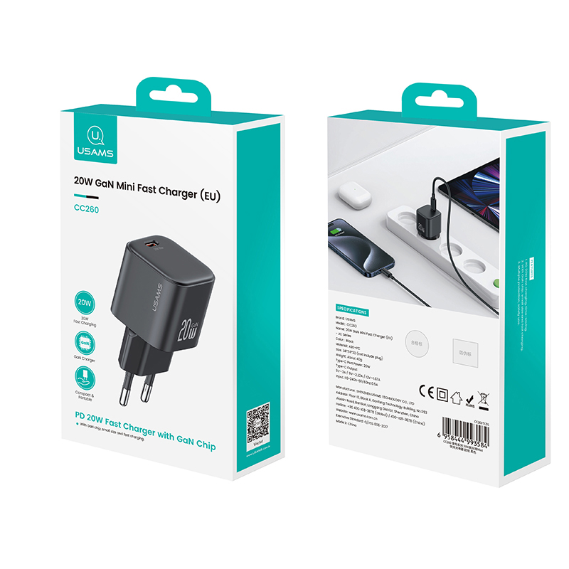 USAMS επιτοίχιος φορτιστής JC Series 20W mini Gan Fast Charger με 1 x Type-C (CC260TC02) – λευκός